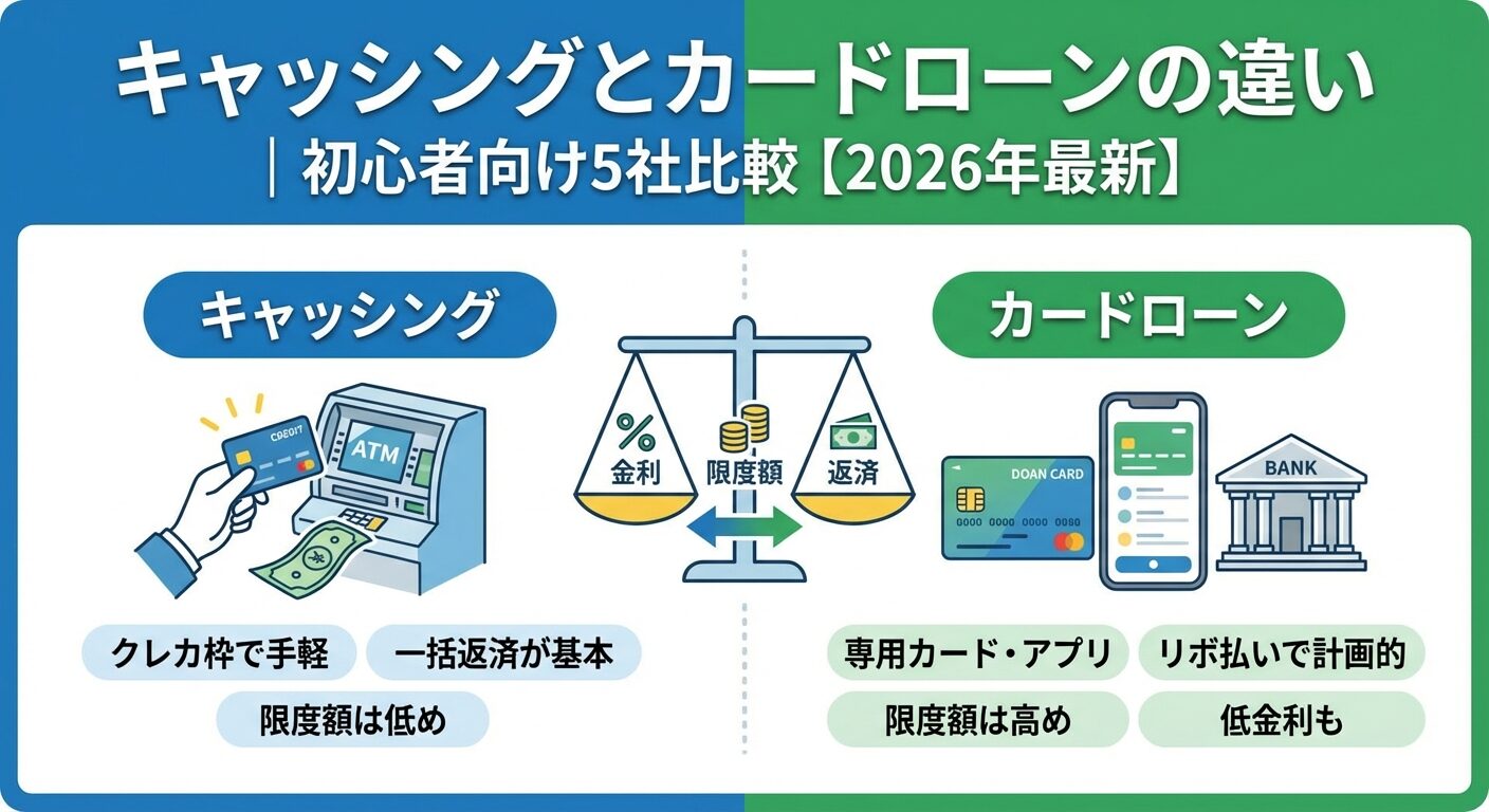 キャッシングとカードローンの違い|初心者向け5社比較【2026年最新】