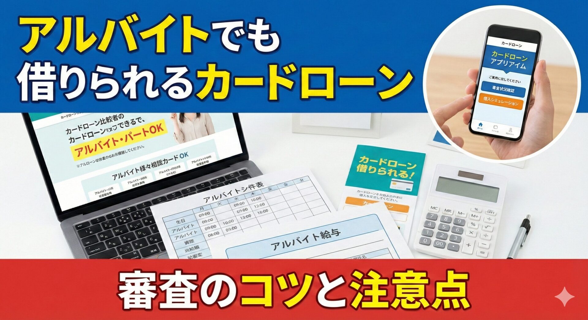 審査では返済能力・信用情報・他社借入状況が重視されるため、借入希望額を必要最小限に抑え、申込内容を正確に記入し、短期間に複数社へ申込まないことが重要です。パート・アルバイト・学生の方でも安定した収入があれば申込可能ですが、専業主婦の方は配偶者貸付または銀行カードローンを検討する必要があります。