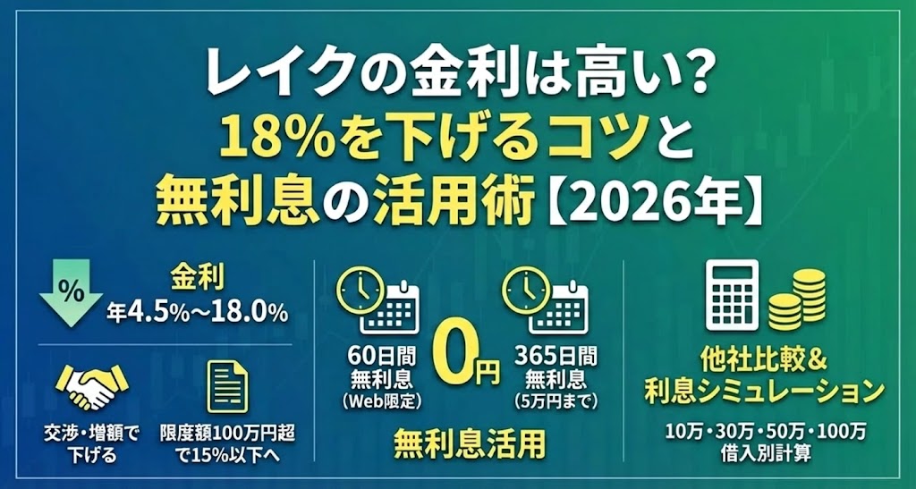 レイクの金利は高い?18%を下げるコツと無利息の活用術【2026年】