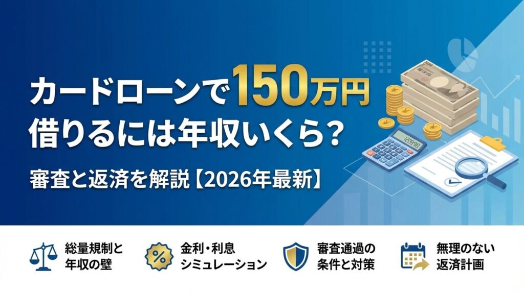 この記事では、150万円借入時の必要年収、月々の返済額、審査通過のポイント、おすすめのカードローン会社を詳しく解説します。