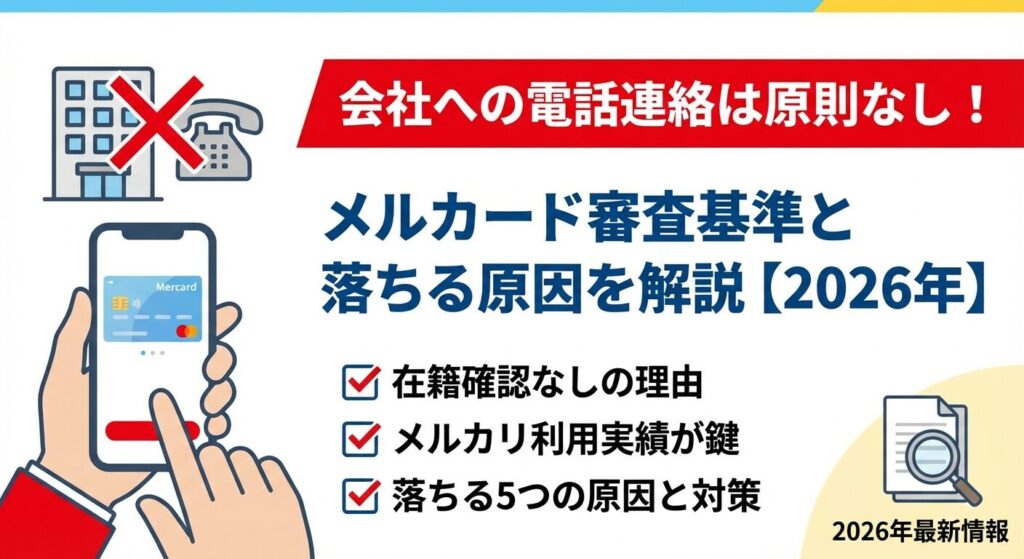 本記事では、メルカードの在籍確認の有無、審査基準、審査に落ちる原因と対策、メリット・デメリット、そして在籍確認なしで借りたい方向けのカードローン情報まで詳しく解説します。
