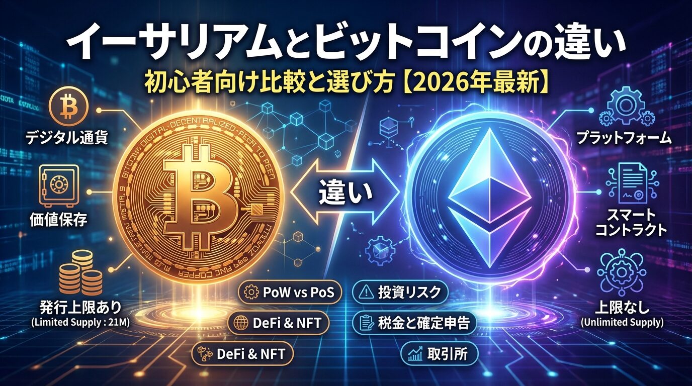 イーサリアムとビットコインの違い|初心者向け比較と選び方【2026年最新】
