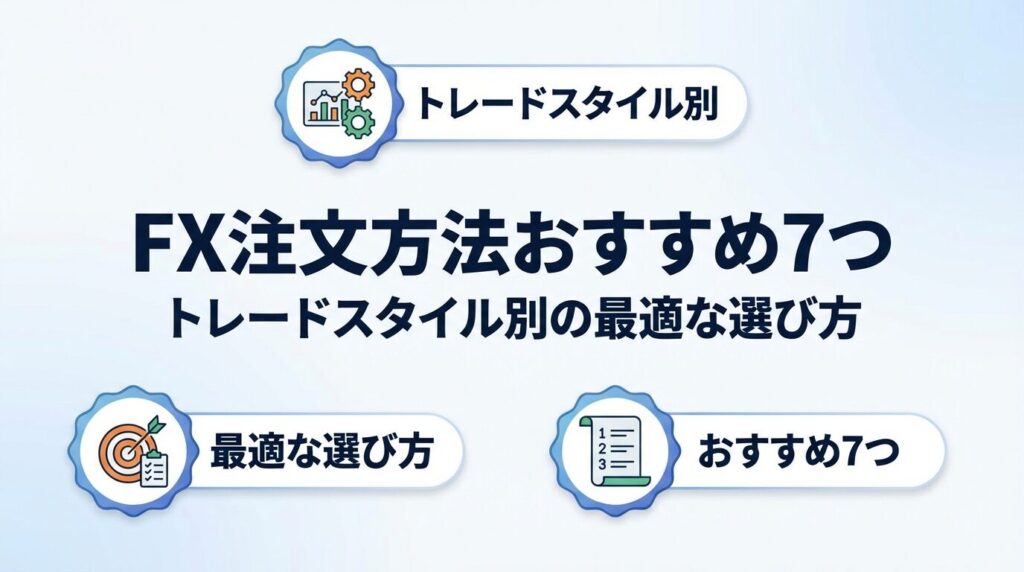 本記事では、FX初心者の方でも理解しやすいよう、各注文方法の特徴とメリット・デメリットを詳しく解説します。さらに、スキャルピング・デイトレード・スイングトレードといったトレードスタイル別に最適な注文方法も紹介しますので、ご自身に合った使い方が見つかるでしょう。