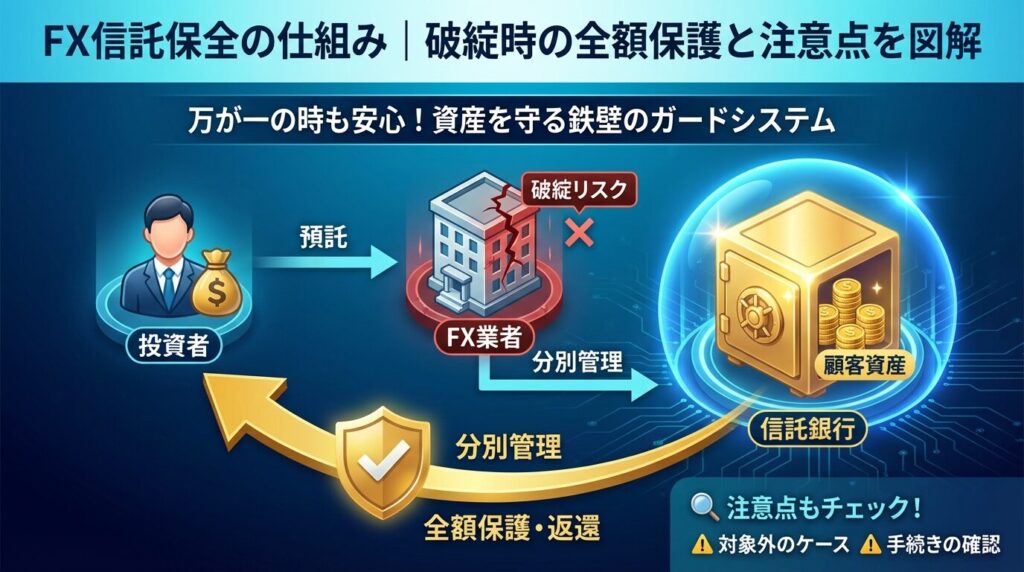 この記事では、信託保全の基本的な仕組みから、保護される資産の範囲、注意点、そして安全なFX会社の選び方まで詳しく解説します。