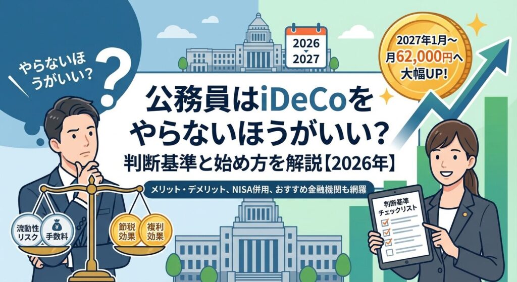 この記事では、公務員がiDeCoをやらないほうがいいと言われる理由、加入すべき人・すべきでない人の判断基準、メリット・デメリットを詳しく解説します。