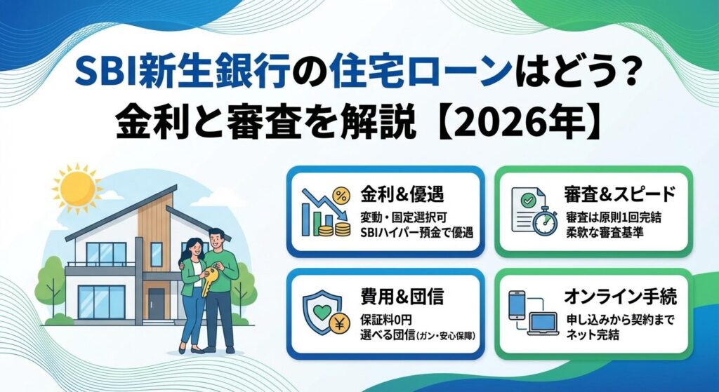 この記事では、SBI新生銀行の住宅ローンの金利タイプ、諸費用、団信の種類、審査の特徴を詳しく解説します。