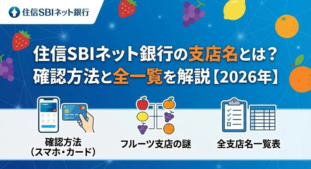 住信SBIネット銀行の支店名は、フルーツ名を中心としたユニークな命名規則を採用しています。支店名の確認方法は、WEBサイトやアプリへのログイン、キャッシュカードや認証番号カードからの確認など、複数の方法があります。