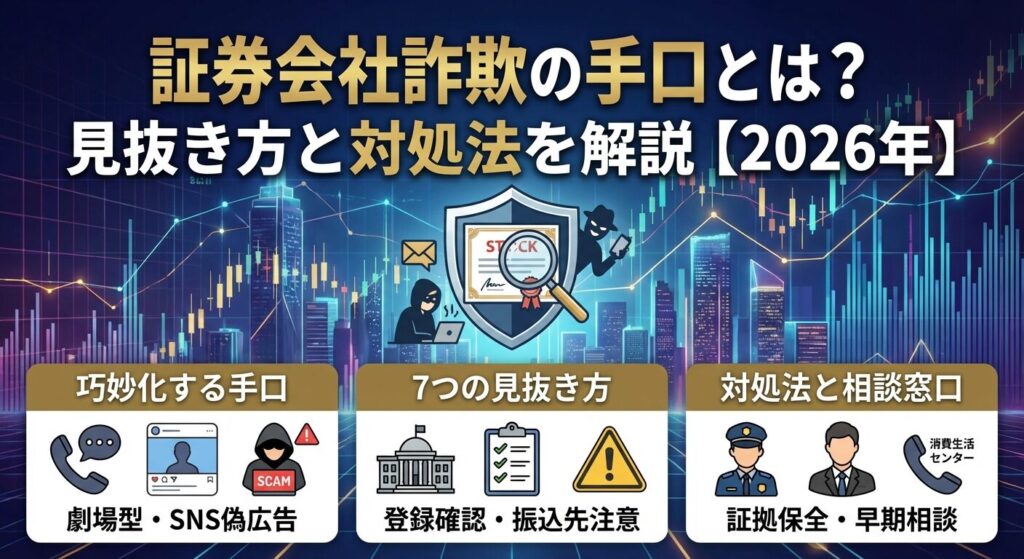 この記事では、証券会社を装った詐欺師の具体的な手口と見抜き方、そして万が一被害に遭った場合の対処法まで、詐欺から身を守るために必要な知識を網羅的に解説します。