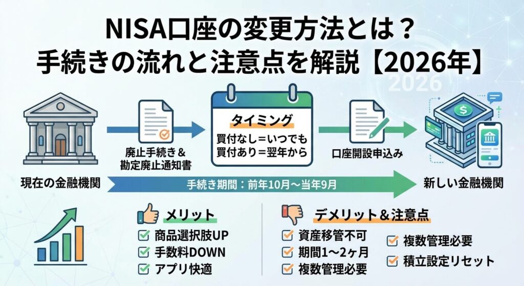 この記事では、NISA口座の変更手続きの流れから、変更すべきかどうかの判断基準、注意点まで詳しく解説します。